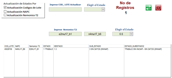 Me puedes ayudar con lo siguiente, en el formulario de frmActualizar me solicitaron realizar un nuevo filtro que tome los registros del campo Nemonico T2 y que de acuerdo a este filtro se pueda escoger unos registros del campo NAPC y que estos se actualicen de acuerdo con el estado que se elija en el cuadro combo.