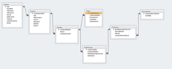 Resumiendo seria Clientes-->Eventos-->Pedidos-->Pedidolinea