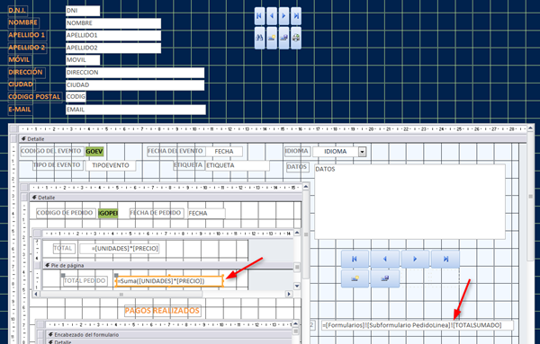 Bien, pues ahora lo que me gustaria es poner el el subformulario eventos o en el formulario principal clientes (me da igual) un campo que me sacara este total del pedido.