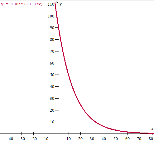 Además “C” es el porcentaje inicia, 100%; y “k” que es la tasa de crecimiento, en este caso de -0.07, ambas son constantes.