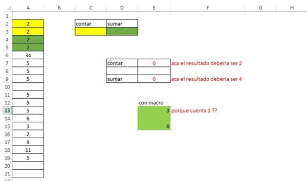 Lic. De nuevo solicitando de su valioso apoyo, deseo contar y sumar con formato condicional, el archivo tiene macros, pero no reconoce el conteo ni suma, le enviare el archivo a su correo el archivo.