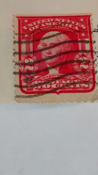 Estampilla de George Washington de dos centavos, impresa en 1902.