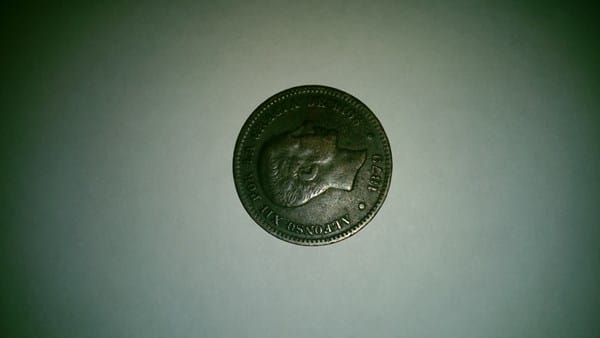 Es de 5 céntimos de Alfonso XII de 1879. Esta bastante bien conservada.