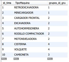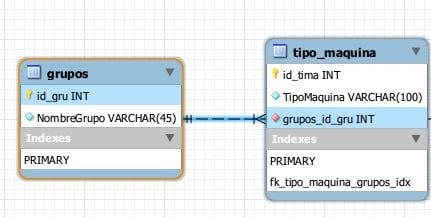 La tabla TIPO DE MAQUINA tiene una columna grupos_id_grupo, que es dada por el trabaja GRUPOS.