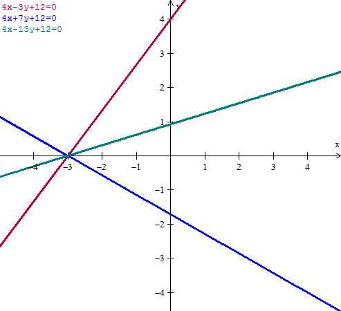 Hallar la ecuación del lugar geométrico de un punto que se mueve de tal manera que la distancia de la recta 4x-3y+12=0 es siempre igual al doble de su distancia al eje por
