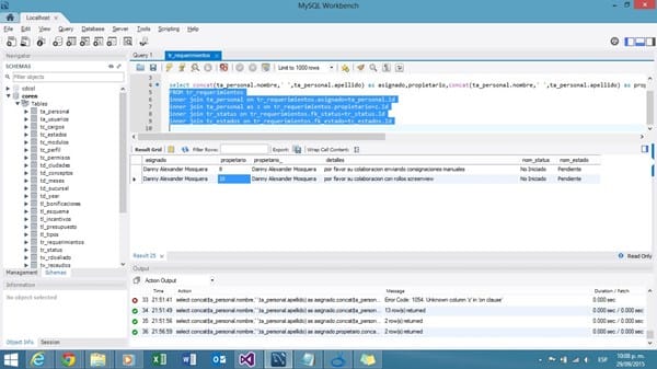 Tengo 2 tablas en una base datos Mysql, en una tabla están todos los funcionarios de la empresa, y en la otra es una tabla donde se ingresan requerimientos. Ejemplo: