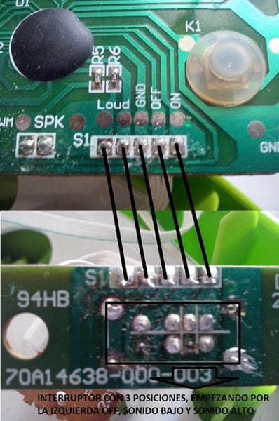 Hola, no consigo descifrar lo que le ocurre al interruptor del juguete de mi nieta, cuando lo enciendo no va en ninguna de las dos posiciones (bajo o alto), si en alguna de las dos posiciones puenteo on y off el juguete enciende perfectamente y al colocar el interruptor en off se apaga bien.