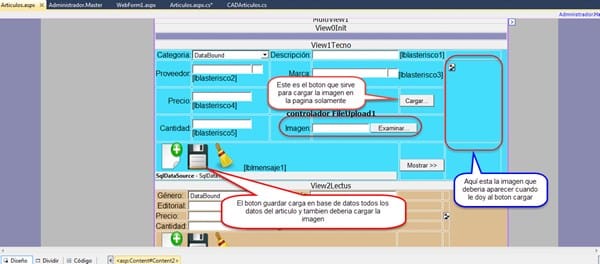 En código fuente ya tengo cargada la librería using System. IO, y cuando verifico que en base de datos veo que están cargados todos los datos de articulo menos la imagen que tiene el tipo de archivo nvarchar(Max), si usted conoce algún error que pueda indicarme se lo agradecería