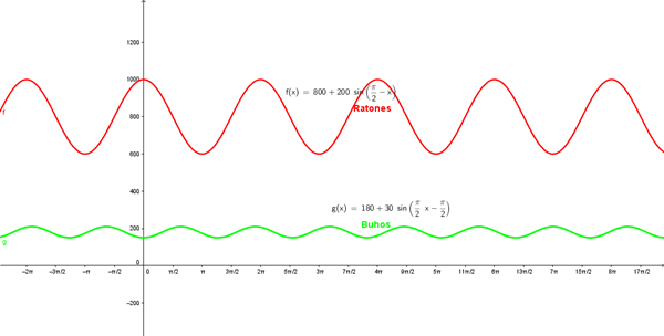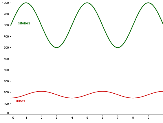 - ¿Cuál es la población máxima de ratones y de búhos? ¿Estos valores máximos ocurren alguna vez al mismo tiempo?