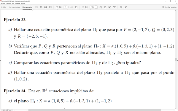 Y los dos vectores son paralelos, luego los tres puntos están alineados y no queda determinado un plano sino infinitos.