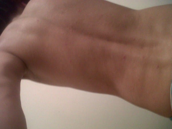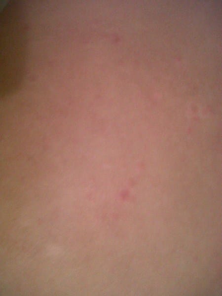 I. Hola Yvo, creo que podría ser una infección por hongos o bien una dermatitis porcontacto aunque esta posibilidad es dificil porque el sarpullido suele ser más extenso y presenta otra forma.