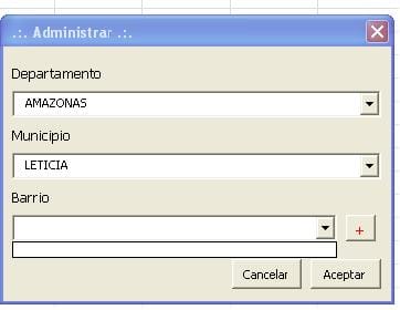 Este formulario, me permitirá crear los nuevos barrios para ese municipio, los cuales deben aparecer en el Combobox Barrio, una vez sean creados, para que de esta menera, lo pueda seleccionar.