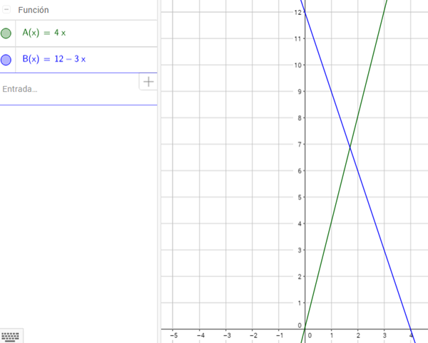 Una persona parte de la cuidad A, distante 12 km de otra ciudad B, a una velocidad de 4 km/h. A la misma hora, parte de B hacia A otra persona a una velocidad de 3 km/h.