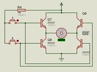Tengo un motor de 12 vdc y quiero diseñar el circuito de cambio de giro del motor con transistores mosfet... Que gire en sentido horario y antihorario