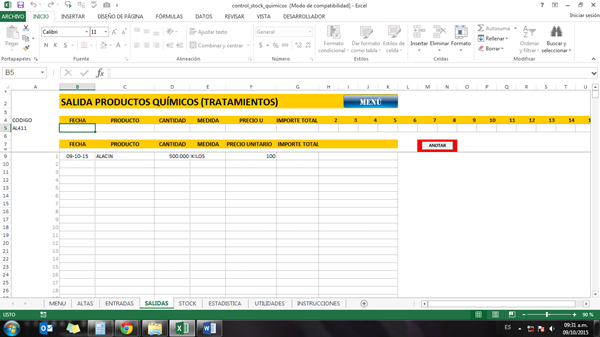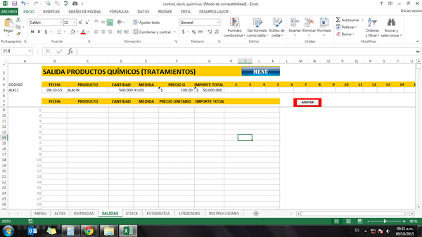 En hoja SALIDA ocupo lo sig. Espero me puedas seguir ayudando...