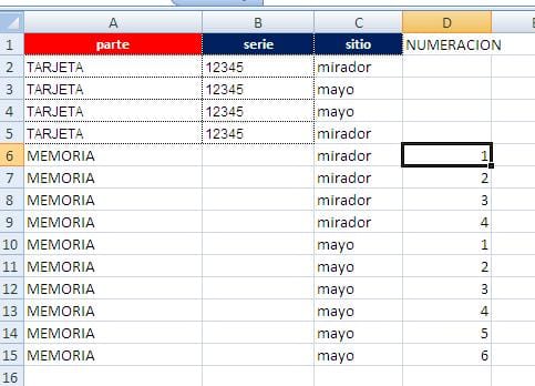 Tomando en que solo quiero numerar lo que diga MEMORIA y que la numeración empiece cada que cambie el sitio.