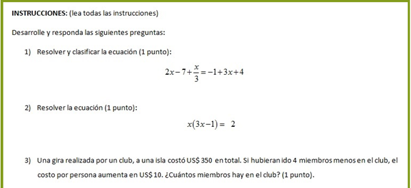1) Es una ecuación de primer grado con una incógnita: