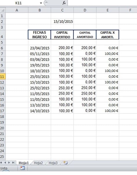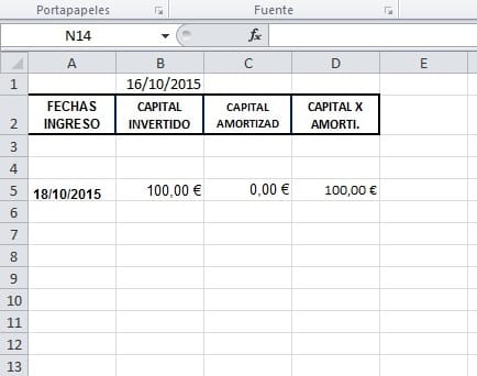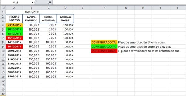 La fecha que hay en la columna A fila 4, esta en amarillo porque le falta de 14 días o más para ser amortizada, Esta función ya esta programada.