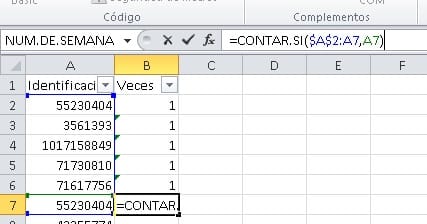 Cells(i, "B") = Application.CountIf(Range("A2:A" & i), Range("A" & i))