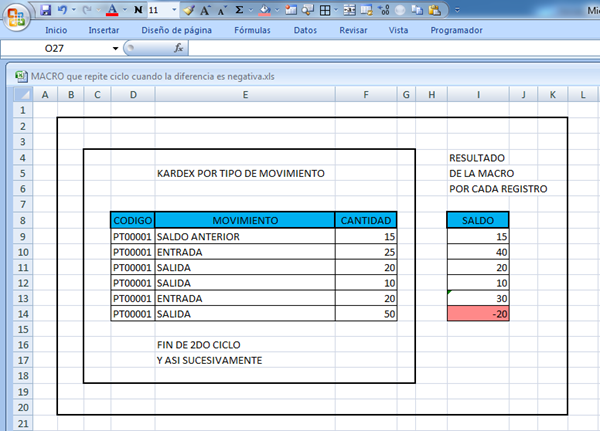 Estoy elaborando un kardex en excel y tengo problemas con los saldos negativos, por favor ayúdeme con la elaboración de esta MACRO.