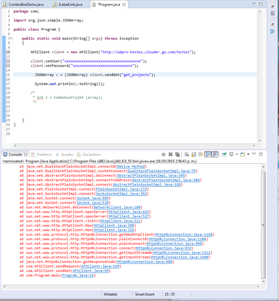 Tengo una aplicación en Eclipse, la cual tiene que conectarse con una pagina web, pero cuando corro la aplicación no trae la pagina web y me salen unos errores:
