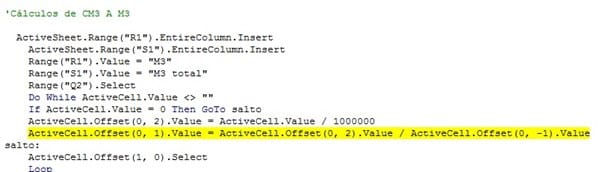 ActiveCell.Offset(0, 1).Value = ActiveCell.Offset(0, 2).Value / ActiveCell.Offset(0, -1).Value