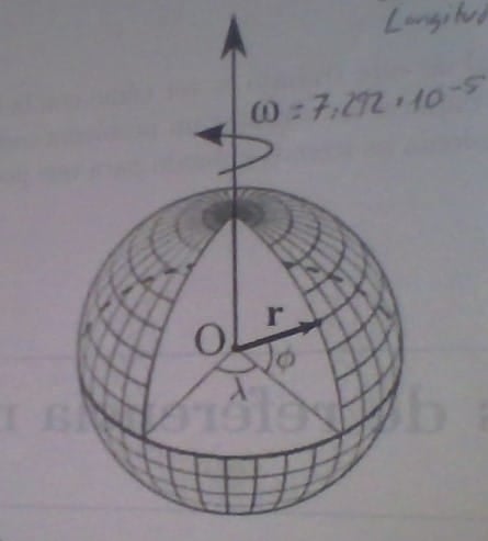 1. V⃗ =ω⃗ ·r=464m/s (módulo) y apunta en todo momento en la dirección de giro; ¿Pero no se supone que v es diferente cuanto más cercana esté al eje de rotación? Sin embargo el radio desde el centro de la Tierra suponiendo esta una esfera perfecta y la velocidad angular son las mismas para todos los puntos, supongo que he de usar el dato de la latitud que me dan, pero no sé cómo hacerlo ni comprendo muy bien lo de las coordenadas esféricas.