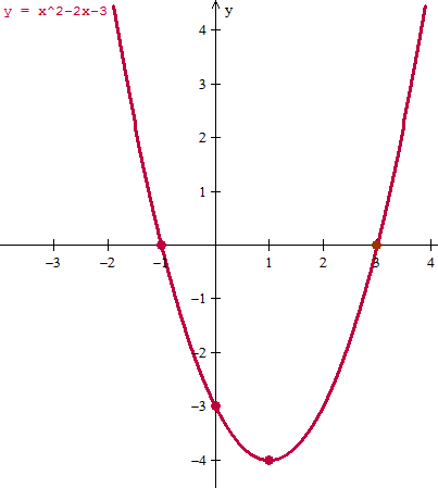 y= 1^2 - 2·1 - 3 = 1 - 2 - 3 = -4