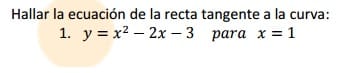 Hallar la ecuación de la recta tangente a la curva