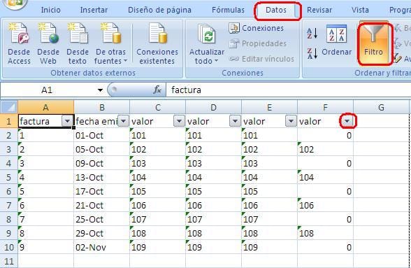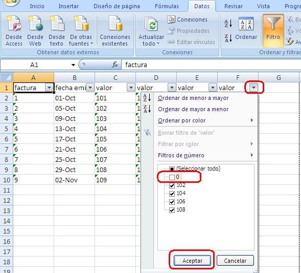 Ocultar en Excel las filas que tengan el valor de la columna en 0