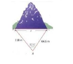 En un tramo de la carretera al llano se desea construir un túnel a través de una montaña, para determinar la longitud del túnel un topógrafo ubicado a 118 m del extremo de un túnel mide un ángulo de 82.6º al otro extremo del túnel ubicado a 64.6 m.Determine la distancia del túnel.