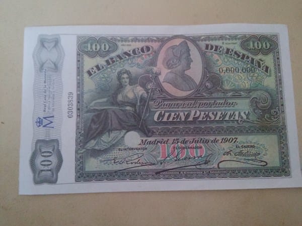 Quisiera saber le valor de este billete de 100 pts del año 1907, muchas gracias de antemano, tened buen día