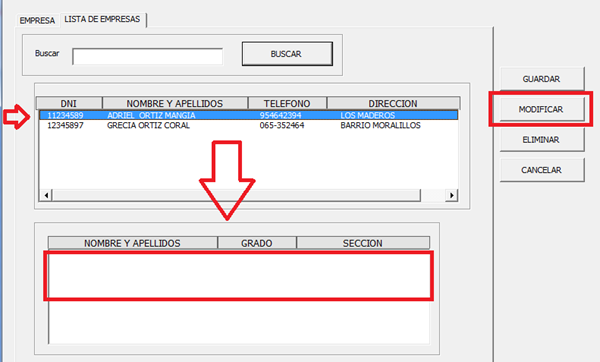 Y cuando el nombre del padre buscado aparezca en el listbox, aré clic en el registro y me mostrará la cantidad de hijos asociados al padre en el otro listbox
