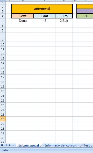 Estoy realizando un trabajo y tengo separado el trabajo en 3 hojas de excel, he realizado bastantes encuestas y ahora he de pasar los datos, el caso es que las primeras columnas quiero que siempre tengan lo mismo escrito les dejo unas imágenes