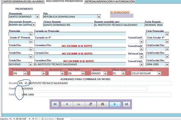 Ya le corregí, ahora sólo me deja espacio con los de noveno(3° de secundaria)" EN EL INSTITUTO TÉCNICO SALESIANO".