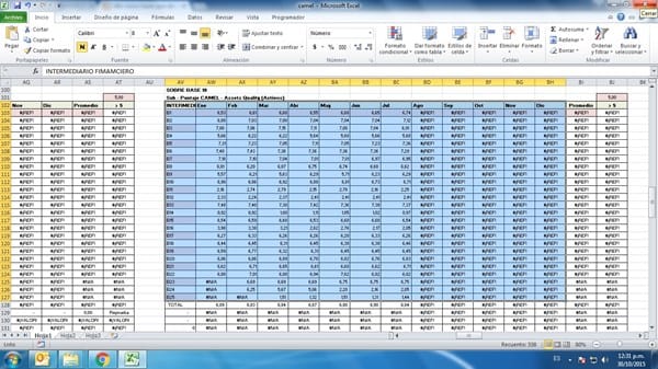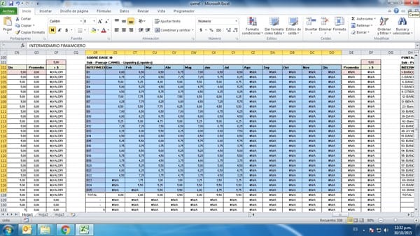 Hay 5 tablas con el mismo formato y la misma cantidad de datos, solo se diferencias por sus valores, la segunda tabla inicia en la columna AF, en la misma fila en la que se ve la de la imagen, las demás siguen tan pronto termine la anterior dejando una columna de separación.