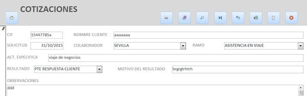 Tengo creado un formulario, donde aparece el campo CIF y Nombre_cliente (referenciados a la tabla CLIENTE) y también ramo, fecha_entrada, etc... (referenciados a la tabla COTIZACIONES.