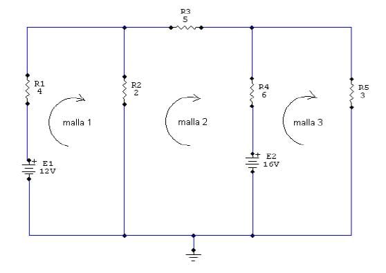E igualmente para las otras dos mallas. O sea tendrás 9 coeficientes de resistencias + 3 terminos independientes de tensiones de malla.