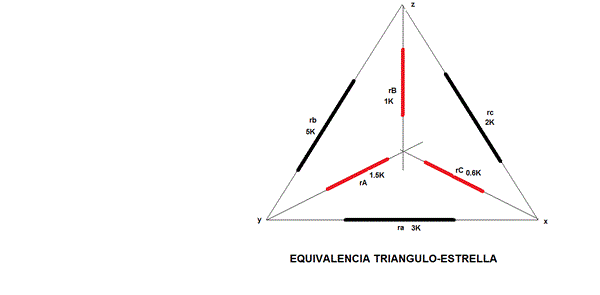 Determinar el circuito equivalente estrella o Y para un circuito Δ como el que se muestra en la Figura.