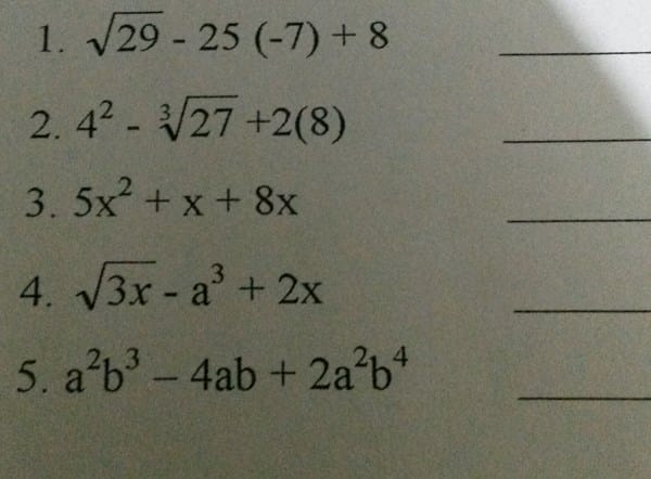 Los ejercicios N° 3; N° 4 y N° 5 son expresiones algebraicas.