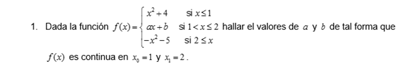 Para que una fución sea continua en un punto deben coincidir los valores de la función y los dos límites laterales.