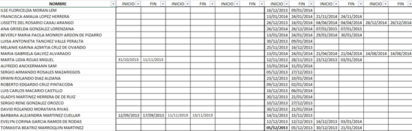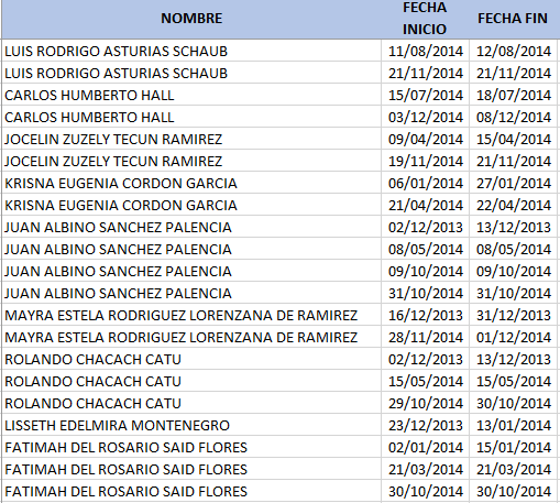 Tengo un tabla en Excel, donde se ingresaron fechas de solicitud de vacaciones, fecha inicio y fecha final, sin embargo se dejaron espacios (columnas) entre solicitudes y algunas otras están seguidas, o sin espacios.