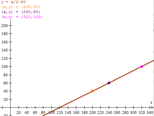 y los puntos a graficar son (200,40), (240,60) y (320,100)