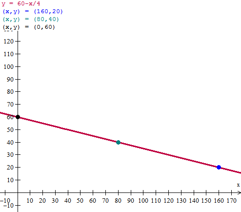 y los puntos que habrá que poner son (0,60), (80,40), (160,20)