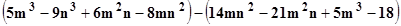 $$\begin{align}&(5m^3-9n^3+6m^2n-8mn^2) - (14mn^2-21m^2n+5m^3-18)\end{align}$$¿como realizar la siguiente resta tomando en cuenta los signos? Necesito saber aplicar las reglas