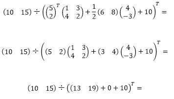 Ejercicio combinado de matriz,compuesta por división,multiplicación y transpuesta.