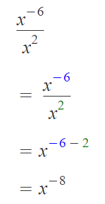 Exprese como cociente la siguiente expresión: x^-6 + x^2