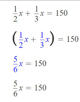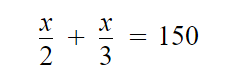 Escribir una ecuación acorde con el enunciado: “La mitad de un número más un tercio del mismo es igual a 150”.