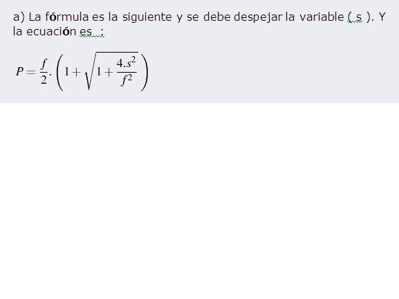 La variable a despejar es ( es ) y esta dentro de la raíz cuadrada que hay adentro de los paréntesis.