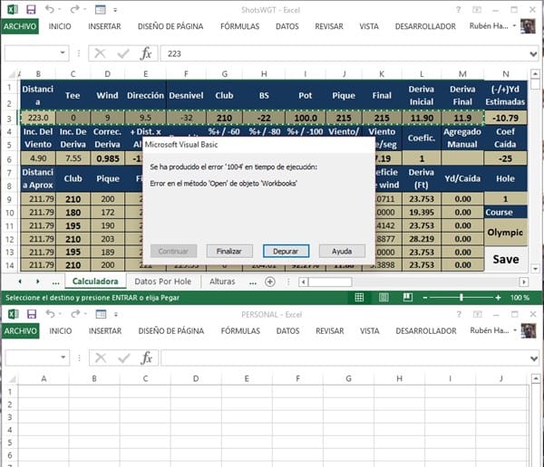 Le remito las capturas con el error . Ejecutando F8 hace todo bien pero cuando ejecuto la Macro me da error.